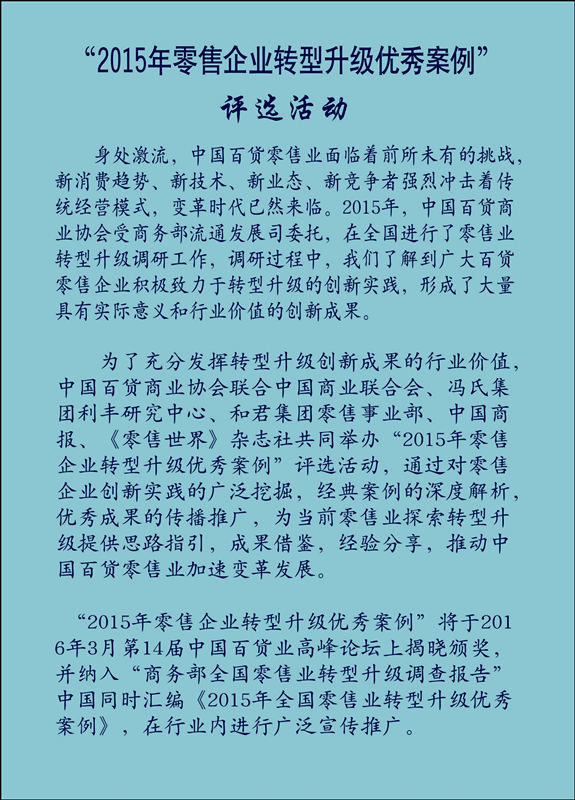 “2015年零售企業(yè)轉(zhuǎn)型升級優(yōu)秀案例” 評選活動開啟
