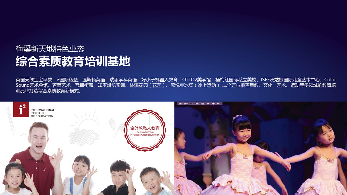 英國天線寶定早教、瑞思學科英語、好小子機器人教育、楊梅紅國際私立美校……全方位覆蓋早教、文化、藝術、運動等多領域的教育培訓品牌,打造綜合素質教育新模式。