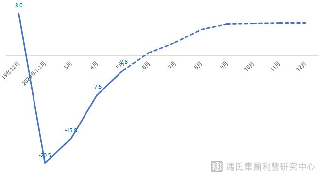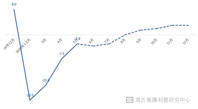 利豐研究中心預(yù)計(jì),全國消費(fèi)品零售總額三季度開始將恢復(fù)正增長。但是,考慮到疫情的影響程度,我們做了基準(zhǔn)和悲觀兩種場景分析。